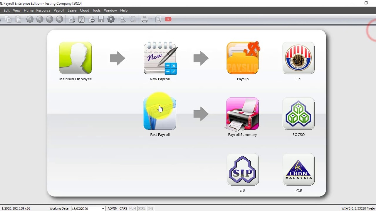SQL Payroll software provides pay slips, payroll summary, credit bank report, cheque listing, contribution info listing, and HRDF report.